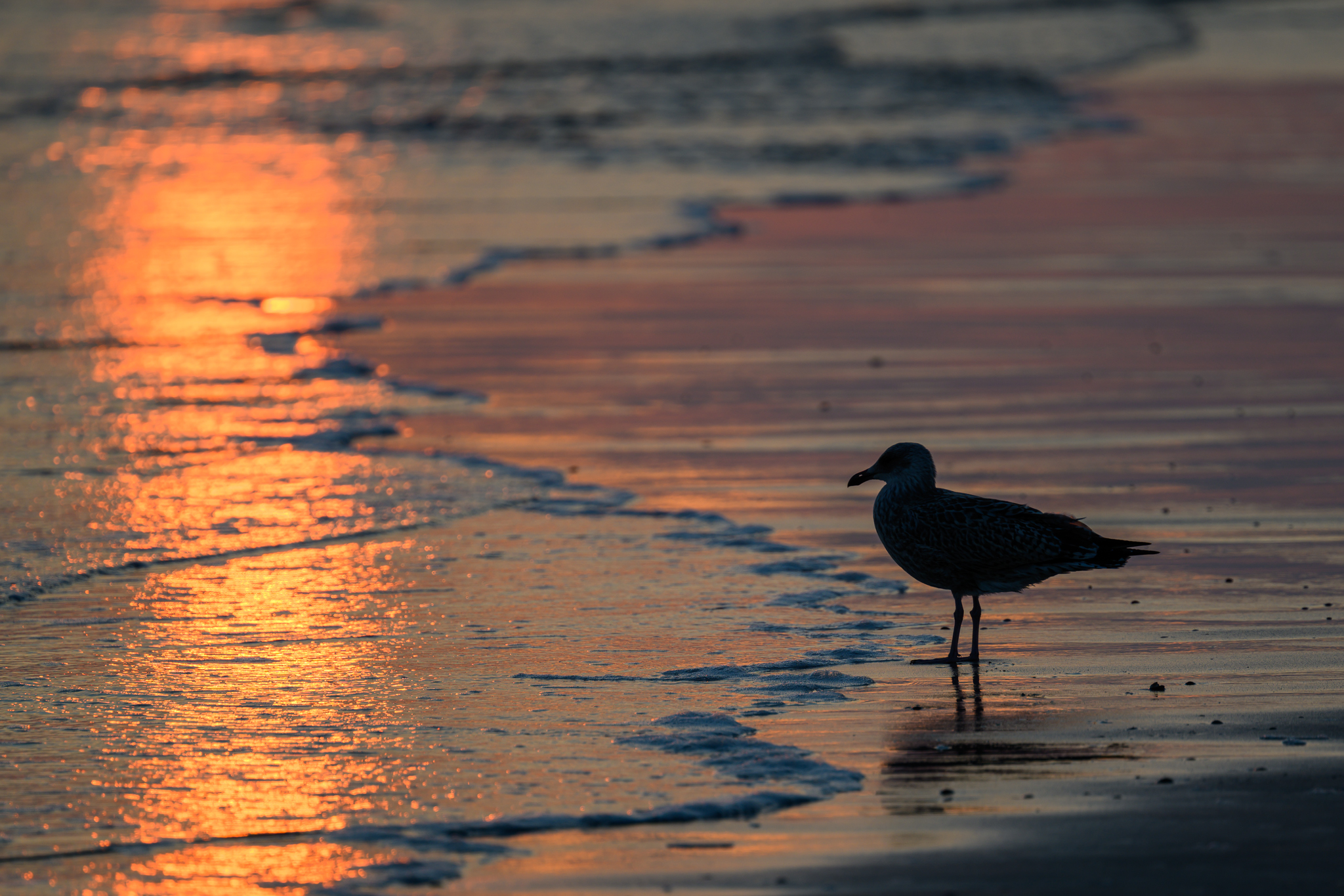 Möwe bei Sonnenaufgang